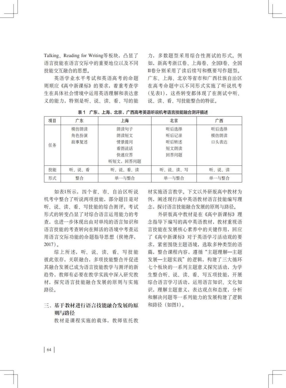 “听、说、读、看、写等语言技能是英语学科非常重要的内容,直接影响学生语言习得和运用能力的发展,以及英语学科核心素养的达成程度。”刘晓指出,近几年来,伴随着课程改革的深化与考试命题改革的不断推进,《高中新课标》以及高考评价测试对学生英语学科核心素养的培养和考察提出了新要求,整合语言技能以及设计听、说、读、看、写融合的综合性语言运用活动已经成为教材编写以及中、高考测量与评价的命题趋势。