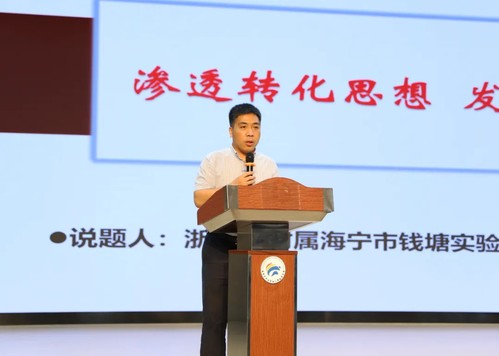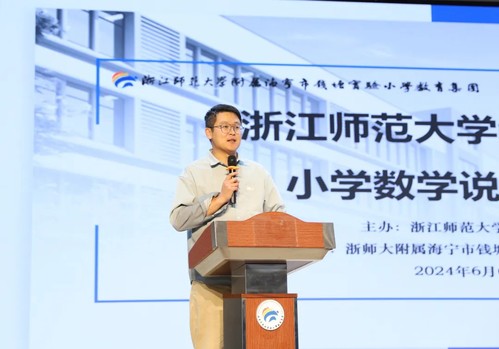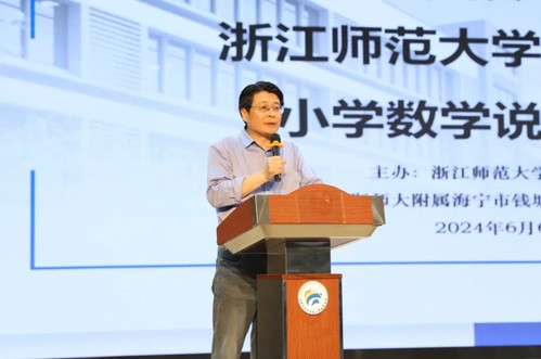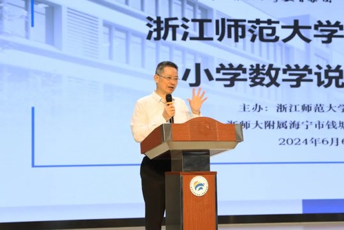 6月6日,在浙师大附属学校小学数学说题比赛的现场,省特级教师、浙师大教育集团专家邱月亮说道。此次比赛在浙师大附属海宁钱塘实验小学举行,省特级教师吕峰波,杭州市余杭区教育发展研究学院教师发展中心主任钟立,岳增成博士,浙师大附属海宁钱塘实验小学校长沈徐力、副书记史雪艳等出席活动。