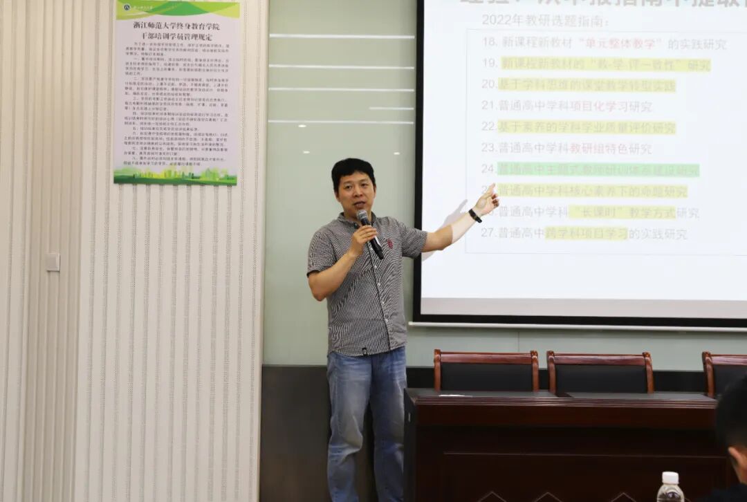 ● 许一鸣作“一线教师如何作课题研究”讲座。