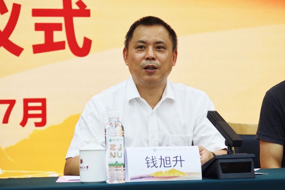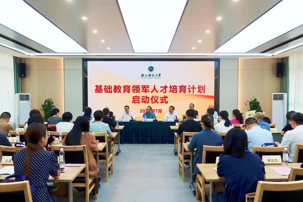 为提升合作学校管理与业务水平,暑假期间,浙江师范大学教育集团启动基础教育领军人才培育计划。7月14日,启动仪式在浙江师范大学正阳楼会议室举行。浙江师范大学副校长李盛,继续教育与合作办学管理处处长钱旭升,教育集团负责人沈夏林,教育集团首席专家张振新,教育集团教育科研部主任蔡志良、副主任林文伟,武义县教研室主任金翀,以及38名学员出席仪式。