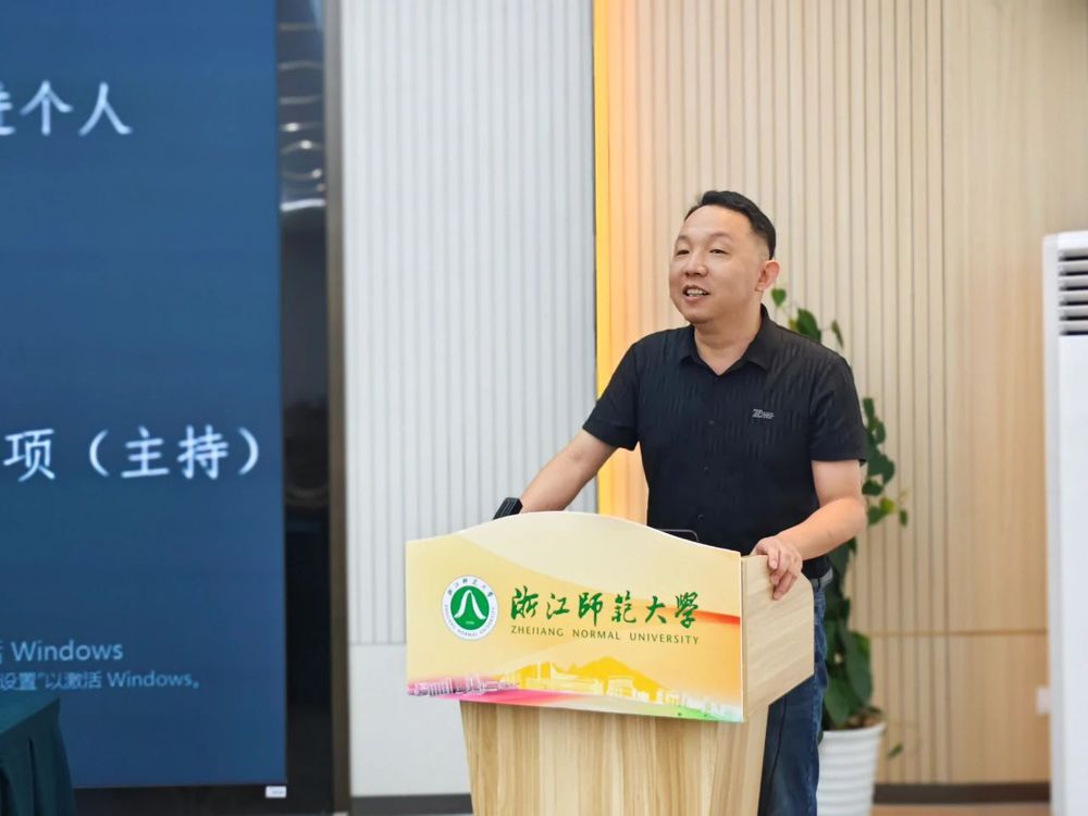 浙师大附属嘉兴市长虹实验学校校长黄水林代表发言,他说:“此次培育乃是我们成长提升的关键契机,我们需努力学习、积极践行,持续增进自身的专业素养与管理能力,从而推动学校的发展。”他对浙师大教育集团领导给予学校发展的关怀表示感谢,对专家为老师们专业成长提供的指导致以谢意。