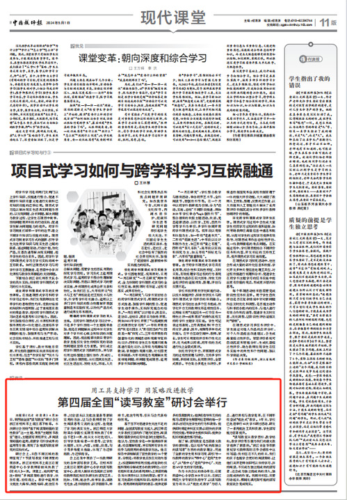 集团动态 当前位置: 首页 > 集团新闻 《中国教育报》:第四届全国“读写教室”研讨会举行 来源:浙江师范大学教育集团作者: 发布时间:2024-05-03 5月1日,《中国教育报》第11版关注了第四届全国“读写教室”研讨会。