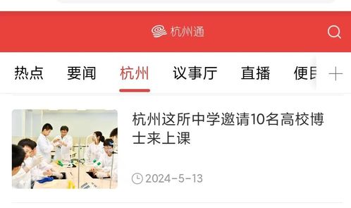 集团动态 当前位置: 首页 > 集团新闻 《杭州通》客户端:附属星澜中学“博士进课堂”活动 来源:浙江师范大学教育集团作者: 发布时间:2024-05-15 5月13日,《杭州通》客户端关注了浙师大10位博士前往附属星澜中学开展“博士进课堂”活动。