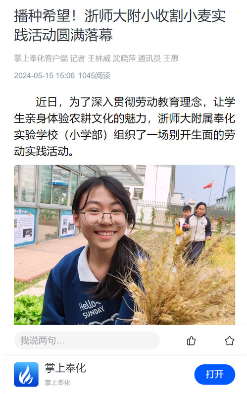 集团动态 当前位置: 首页 > 集团新闻 《掌上奉化》客户端:锦溪小学收割小麦实践活动 来源:浙江师范大学教育集团作者: 发布时间:2024-05-17 5月15日,《掌上奉化》以生动的笔触描绘了锦溪小学学生参与收割小麦实践活动的场景。