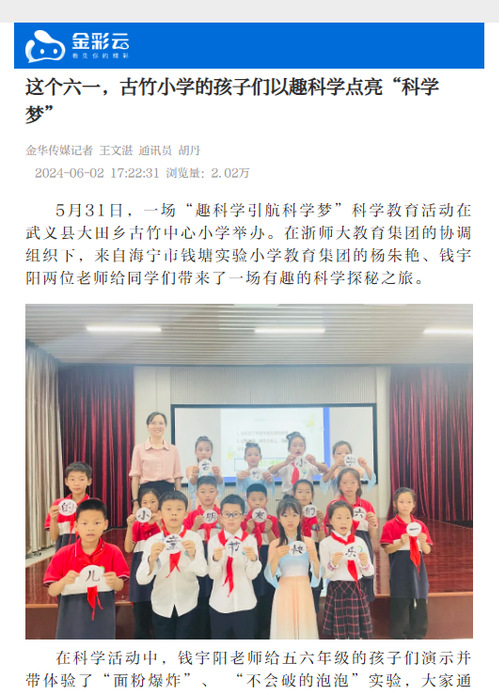 集团动态 当前位置: 首页 > 集团新闻 《金彩云》客户端:教育集团专家武义送教 来源:浙江师范大学教育集团作者: 发布时间:2024-06-03 6月2日,《金彩云客户端》生动地展现了在浙师大教育集团的协调组织下,来自海宁市钱塘实验小学教育集团的两位老师给同学们带来了一场有趣的科学探秘之旅。