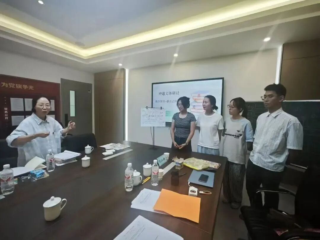 王国均以神话文本为切入点,带领教师围绕《羿射九日》与《开天地》展开实践学习。通过分组协作制作教学设计海报的形式,将神话文本分析的理论知识与课堂教学实践深度绑定,这种理论落地的路径,让教师们直观感受到“读写融合” 的实操逻辑。