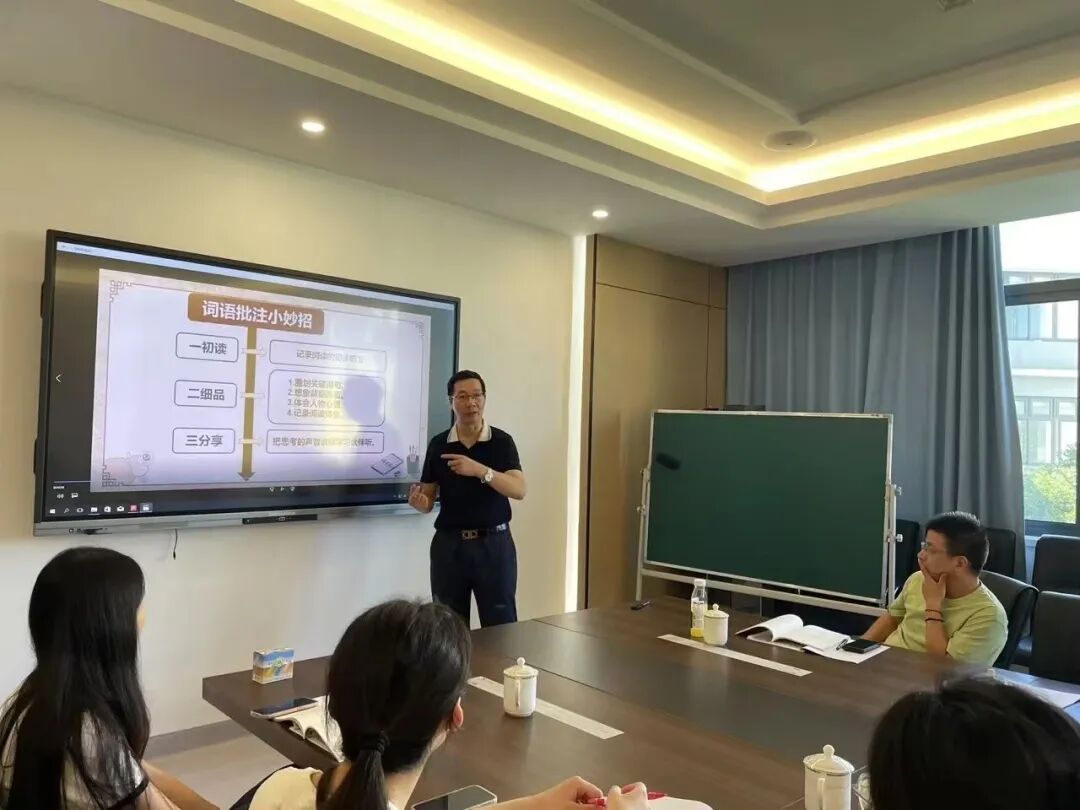 夏伍华开展“批注策略教学的课堂样态” 专题培训,讲解了批注教学的基本特征,分享了批注的小妙招,还以《开天地》为实操文本,让教师亲身感受“批注策略”教学中的实际运用以及扶放有度的课堂样态。同时,夏伍华介绍了多策略的教学运用、学习单的设计,为后续多策略的深入学习奠定基础。