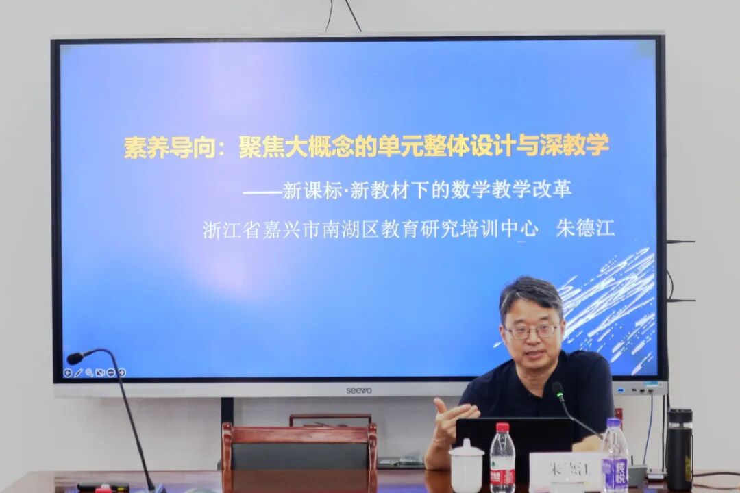 “素养具体表现在面对真实情境、真实事件中会观察、会思考、会表达、会分析解决问题。”朱德江用“抽象、推理、模型”三个核心词,概括出数学教育素养导向的特点,并提出将素养目标分解到每个课时中去,通过“学教评一致”的单元整体教学和学习深度发生落实素养目标。他强调要重视大概念教学,加强整理与复习,依托知识间的内在联系,实现 “有结构地教” 与 “有关联地学”,助力学生完成学习进阶。