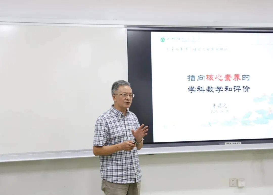 朱昌元围绕“指向核心素养的学科教学和评价” 开讲,立足 “三新” 教育改革框架,明晰课程、课标、教材、教学与测评的逻辑关联。在“课堂教学”板块,朱昌元聚焦单元目标研制和情景任务创设,指出单元目标研制需立足学情,需兼顾“学生实际状态”与“发展可能”;阐释了情景任务的相关要点,并以教学案例向大家强调了任务创设的关键:溯源任务来源,明确学科教学价值,规划活动转化与评价路径,避免“半拉子工程”。