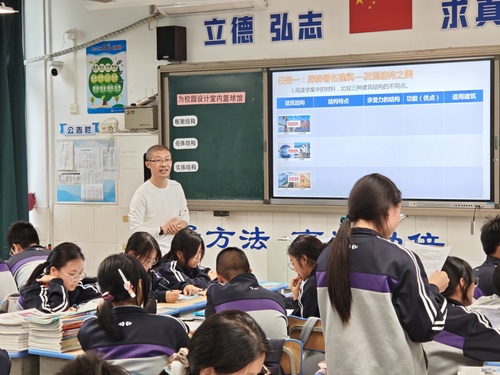 浙江省教坛新秀、杭州市临平第一中学教师蔡忠伟带来“建筑结构与功能”示范课,将活动推向高潮。蔡老师以“鸟巢”“悉尼歌剧院”等经典建筑为案例,通过模型拆解、受力分析、功能对比等互动环节,巧妙融合力学原理与建筑美学。学生不仅掌握了拱形结构承重优势、框架结构抗震原理,更在“设计未来校园”的实践任务中,激发了跨学科思维与创新意识。课后,听课教师纷纷表示:“蔡老师的课堂是科学与艺术的交响,让学生在真实问题中感受科学的温度与力量。”