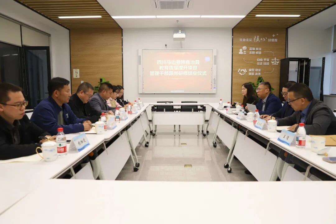 10月30日,为期三周的四川马边彝族自治县教育质量提升项目管理干部跟岗研修结业仪式在浙师大附属星澜中学举行。研修项目负责人、教育集团专职专家童桂恒,附属星澜中学书记、校长吴清玉,附属星澜中学副校长苏翔,研修项目班主任、教育集团媒体推广部主任王小民出席仪式。