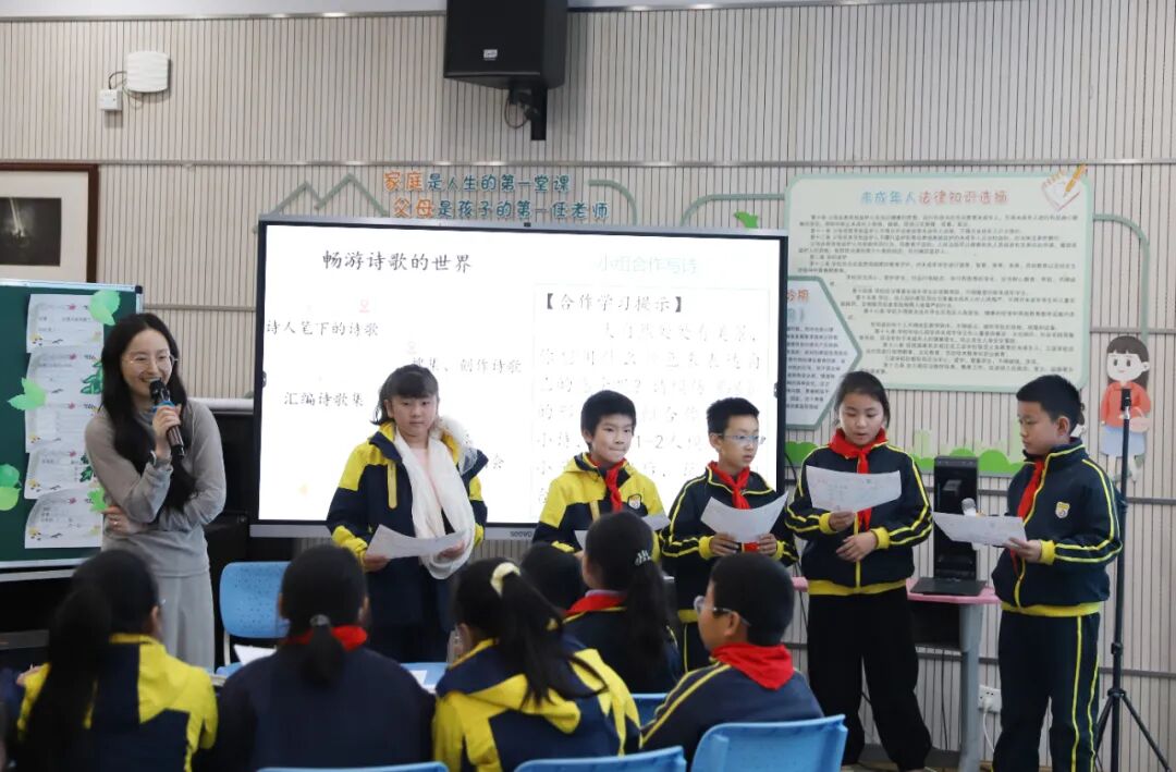 “在今天这个场合,我们要说真话,不要怕说真话、怕听真话。” 在改课现场,张晨瑛强调,日常教研必须坚守真问题导向、真实践探索、真反思复盘、真改进落地。张晨瑛想听到的“真话”会在今天的教研活动中发生吗?“课堂呈现了很多优点,在今后教学中要持续坚持落实,现在我们一起来反思...”张晨瑛立马让老师们开启头脑风暴,“你在备课过程中最难突破、最想解决的是什么?”“老师们在听课过程中有质疑的地方有哪些?”展示课后,老师们开始了第二次卷入——现场“对话式”诊断改课。“让孩子描述想象的画面感,我觉得比较有难度。”“课堂的朗读环节只聚焦到概念层面。”“任务的设计还需考虑开放性。”......老师们接连反复提问和表达观点,说出心里的困惑和疑问。全员一起碰撞想法、热烈讨论,最终在多个切片问题上达成共识。“这个共识是学校教师一起参与讨论得出的,与学科教学现状是相匹配的。”黄凤英说。一场紧凑高效的互动讲评结束后,现场通过随机抽签确定下午的执教教师再现课堂,随后,老师们便开始了第三次卷入——限时优化改课。午休时段,备课团队即刻围坐桌边,争分夺秒打磨教案、优化教学设计,为下午的课堂呈现全力冲刺。专家组保持“候场”状态,随时准备给老师们提供即时答疑与专业指导。结合改课的建议,单雨萱优化重组了教学环节,并调整了教学节奏。通过示范领读、个人品读、小组共读、男女生对读等多元朗读形式,加强学生对语言的梳理和品析,引导学生在反复诵读中品味语言、想象语言传递的画面。“改课过程中,脑子里堆了很多东西。如何在有限时间内理清思路,将这些碎片化的思考有机串联、融入教学设计是很大的困难。”单雨萱坦诚说出了在改课过程中的困惑和挣扎。至此,老师们进入了第四次卷入——专家复盘评课,全体听课教师再次观察课堂后,对比讨论前后变化。“年轻教师在这么短的时间内完成理念到行为的转化是很不容易的,但备课团队敢于尝试,重构课堂,值得充分肯定。”张晨瑛肯定了备课团队的付出与进步,随即以一连串犀利的互动提问,再度点燃现场研讨氛围,引导老师们深度复盘、碰撞思维。“教研前、教研中及教研后的每个环节虽任务繁重、挑战重重,但能让研修真正落地见效,助力教师实现快速成长。”张晨瑛如是说道。对此,黄凤英深表赞同,“今天的教研活动极具意义与价值,我们看到所有老师都在‘水里游泳’,而没有站在岸上当旁观者。”“此次校本教研,老师们进行了‘教研前团队协同备课—现场‘对话式’诊断改课—限时优化改课—专家复盘评课’四次深度卷入,我们有‘卷入’,就要有‘导出’。”黄凤英从“卷入式”教研机制的构建层面阐述了本次活动的目的和意义。她指出,此次活动的价值非局限于打磨出一堂高质量的示范课例,更在于构建并完善“卷入式”教研活动的框架与操作范式——旨在以该模式为实践载体,推动教研活动“实质性发生”,并逐步实现常态化、长效化,真正以教研赋能教师成长、驱动学校高质量发展。教研活动后,专家团队和学校课题组针对教研过程的结果转化进行了深入研讨。至此,全员卷入的教师研修进入“收汁”环节,专家组从管理、学科和科研的层面对可行成果提出建议和思路,促进教研的成果“导出”。“今天教研活动中呈现的亮点与暴露的问题,均可以成为课题研究的重要切入点。”基于全天沉浸式教研观察,周晓燕针对此次教研活动形成的可行课题,为学校课题组明确了下一步的推进规划与实施思路。她强调,课题研究需在兼具前沿性与学术价值的基础上,紧密锚定学校教育教学的实际需求与现实困境,以问题解决为导向,切实服务于学校的内涵式发展。