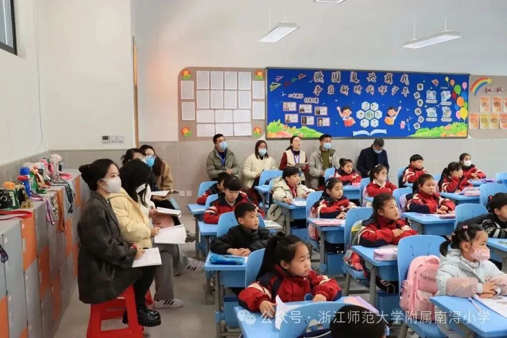 12月18日,附属南浔小学开展语文、数学学科教研活动。教育集团专家张晨瑛、省特级教师范新林深入课堂全程指导,为学科教学与学校发展注入专业智慧。附属南浔小学语文、数学教师参与活动。