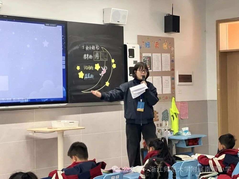 沈好老师执教一年级语文经典篇目《小小的船》,为语文教学研讨提供了鲜活的课堂范例。课堂上,沈好以歌曲导入吸引学生注意,聚焦“小小的”“弯弯的”等叠词,引导学生感受语言韵律之美。通过指认、比画等方式,将“月儿”与“小船”的对比变得生动可感,并借助字形解析、动作模仿和图文结合,让学生在游戏与朗读中体会诗歌的画面与意境。整堂课在读中感悟,于温馨的诵读声中收尾。