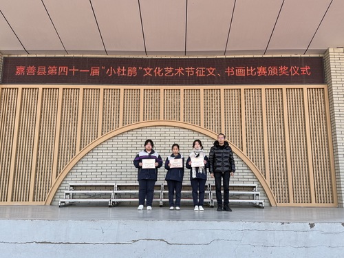 在嘉善县“小杜鹃”文化艺术节,第十九届“吴镇杯”中小学生绘画、书法比赛中,附属嘉善干窑中学艺术教育成果再创辉煌。绘画比赛中,907班顾欣妍、张方瑞以创意构图与精湛技法荣获一等奖,907班陆忆萱获二等奖,903班陈燕萍、907班董宏韬获三等奖,指导教师张伟霞获评“优秀辅导教师”称号;书法比赛中,901班张雨辰以刚劲洒脱的笔锋斩获二等奖。902金雅怡在在平面设计中获得三等奖。学生们通过水墨丹青与硬笔书法诠释对中华文化的理解,展现了学校美育与传统文化教育的深度融合。