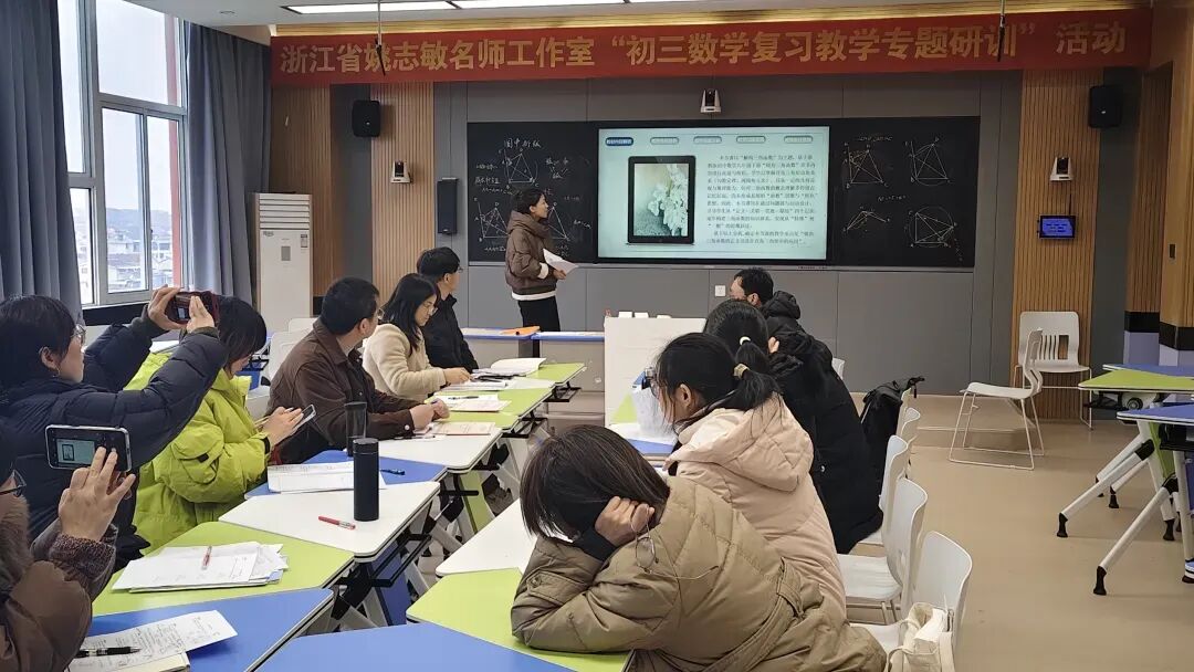 1月6日,教育集团专职专家、省特级教师姚志敏,在浙师大婺州外国语学校牵头组织“新中考背景下初三数学复习教学专题研训”活动。浙江省姚志敏名师网络工作室全体学科带头人、浙师大婺州外国语学校全体数学教师、附属金华市第十五中学初三数学教师,以及姚志敏结对浙师大“未来好老师”初中数学学员参加活动。