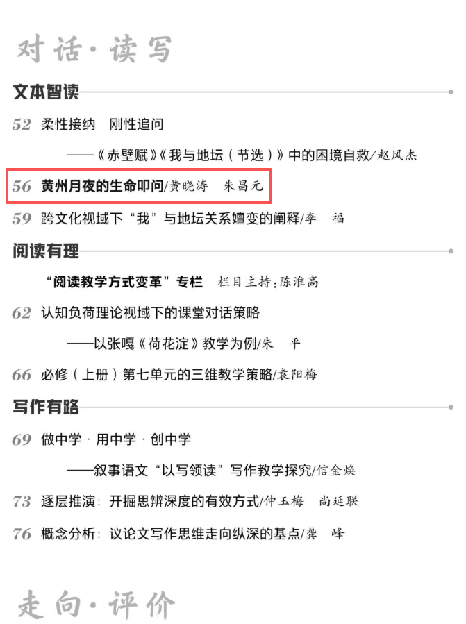近日,“未来好老师”培育项目传来喜报,由高中语文组学员黄晓涛和导师朱昌元共同撰写的文章——《黄州月夜的生命叩问》,作为重点推荐阅读文章,发表在《中学语文教学参考》上。