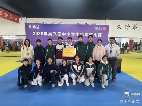 在刚刚结束的2026湖州市吴兴区中小学跆拳道比赛中,附属织里实验中学跆拳道队在魏浩杰、周燕男老师的带领下,再次斩获佳绩,勇夺团体一等奖(第一名)。